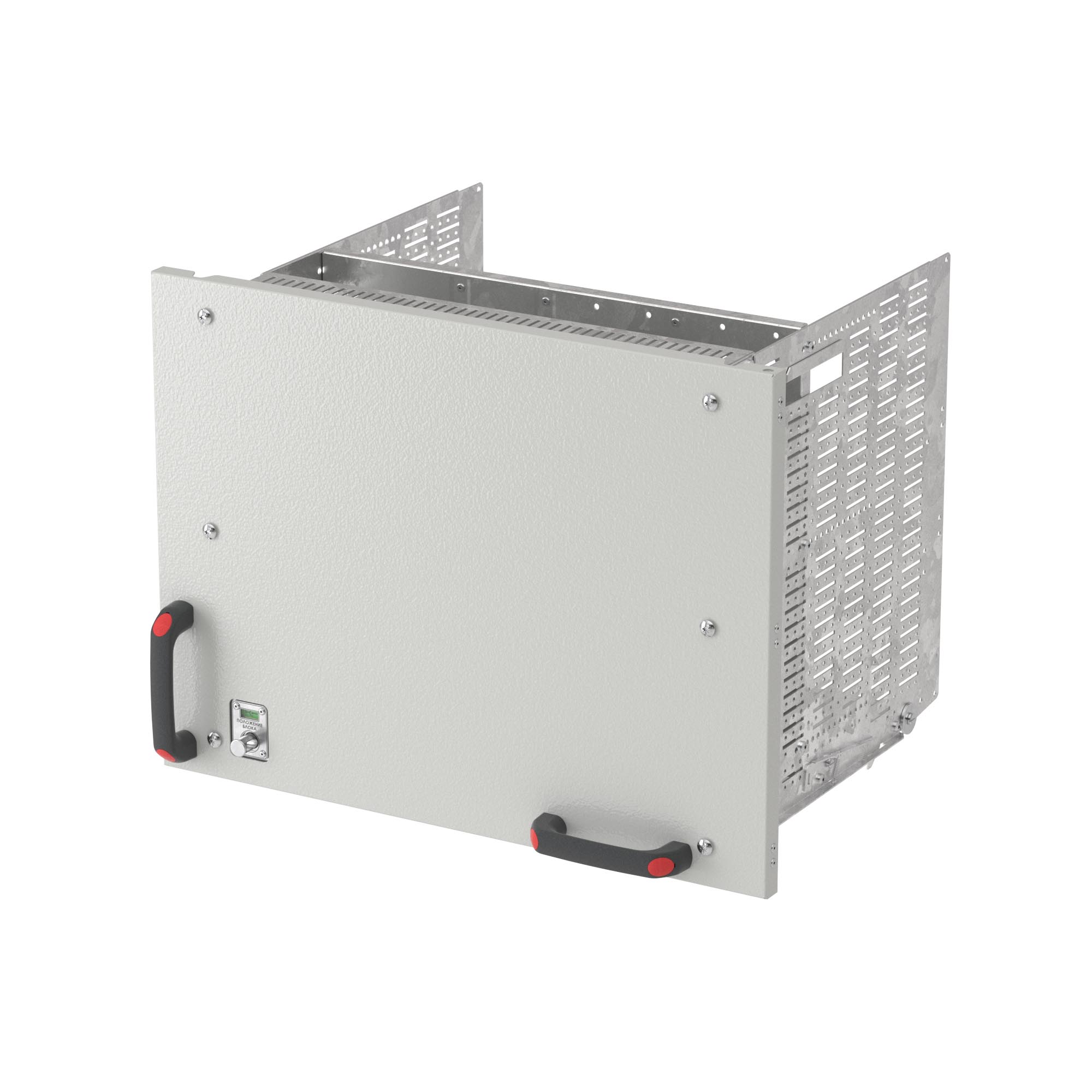 Корпус выкатного блока кратностью 9M1 и высотой 450 мм предназначен для создания выкатных функциональных блоков в решении "RAM mcc". Выкатной блок имеет систему блокировки, исключающую возможность перемещения блока при включенном АВ, цветовую индикацию текущего состояния "Выкачено"; "ТЕСТ"; "Вкачено", защиту от выпадений и позволяет установить навесные замки для блокировки перемещения блока. Во время перемещения блока обеспечивается надежная фиксация в каждом из положений. В положениях "ТЕСТ" и "Выкачено" блок сохраняет степень защиты IP20 за счет установленного защитного экрана. Для доступа к внутреннему пространству выкатной блок снабжен фронтальной дверь-панелью. Извлеченный выкатной блок допускается устанавливать на его заднюю панель без риска повреждения контактов.