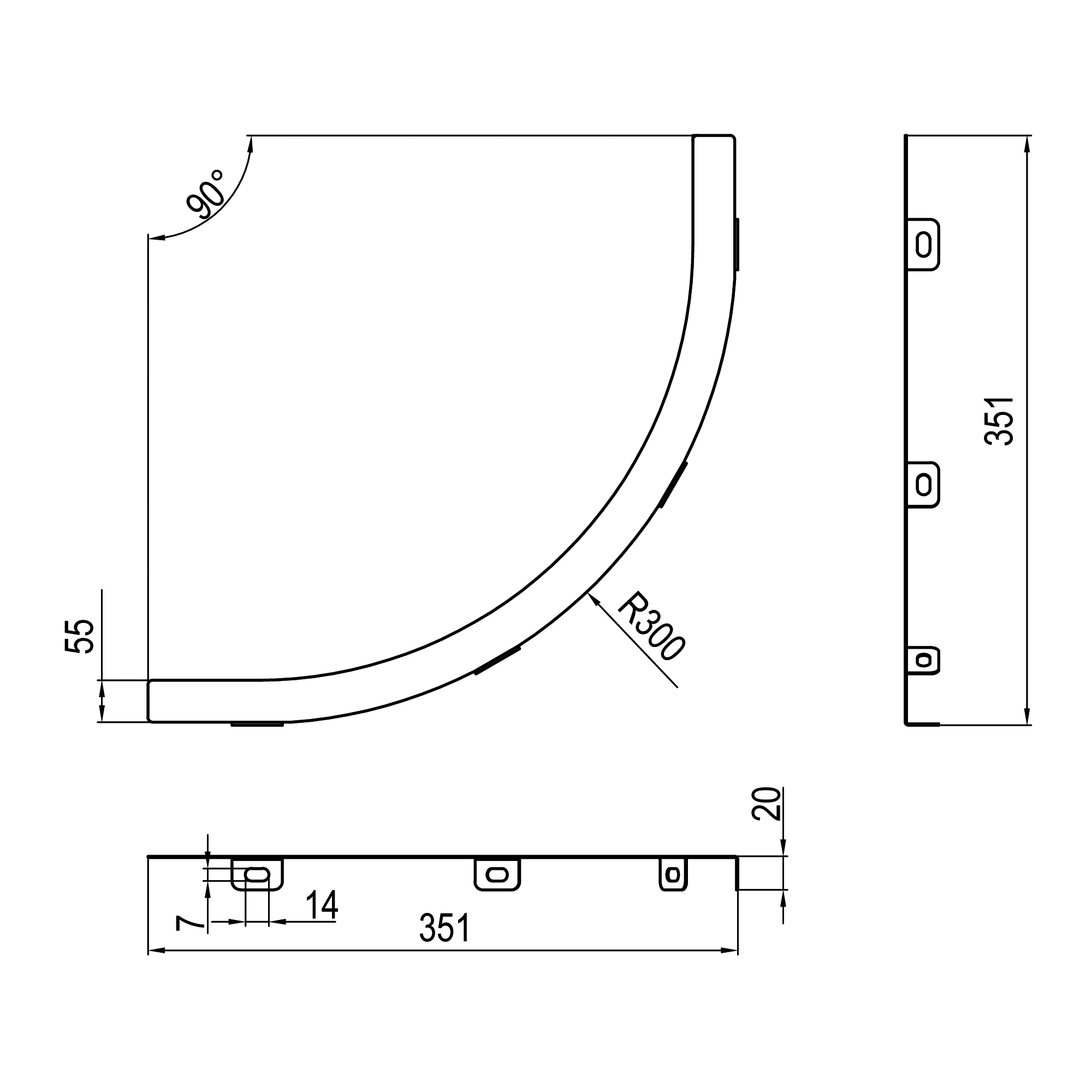 Перегородка SEP для вертикального внутреннего угла 90° H80, R300, в комплекте с крепежными элементами необходимыми для монтажа