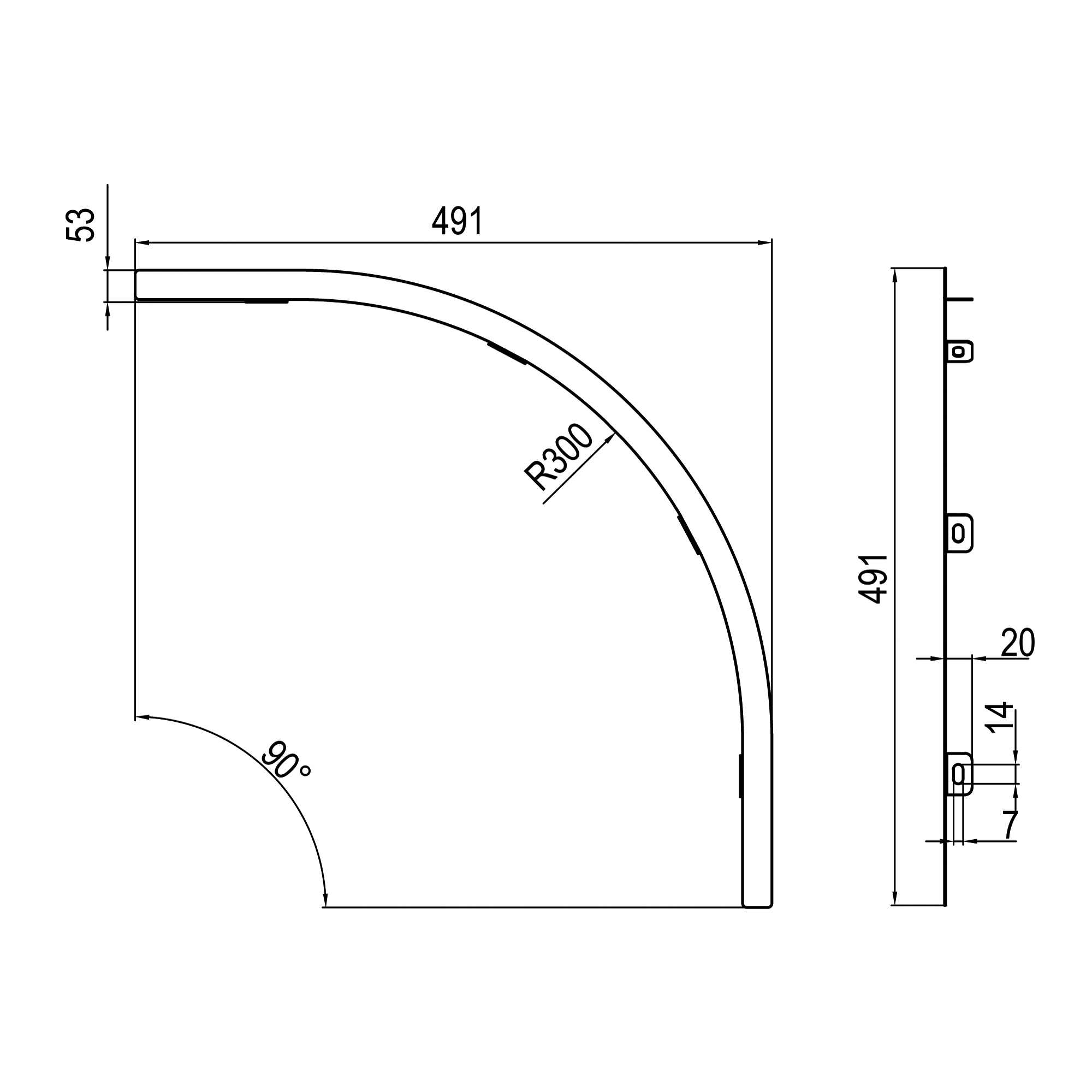 Перегородка SEP для вертикального внешнего угла 90° H80, R300, цинк-ламель, в комплекте с крепежными элементами необходимыми для монтажа