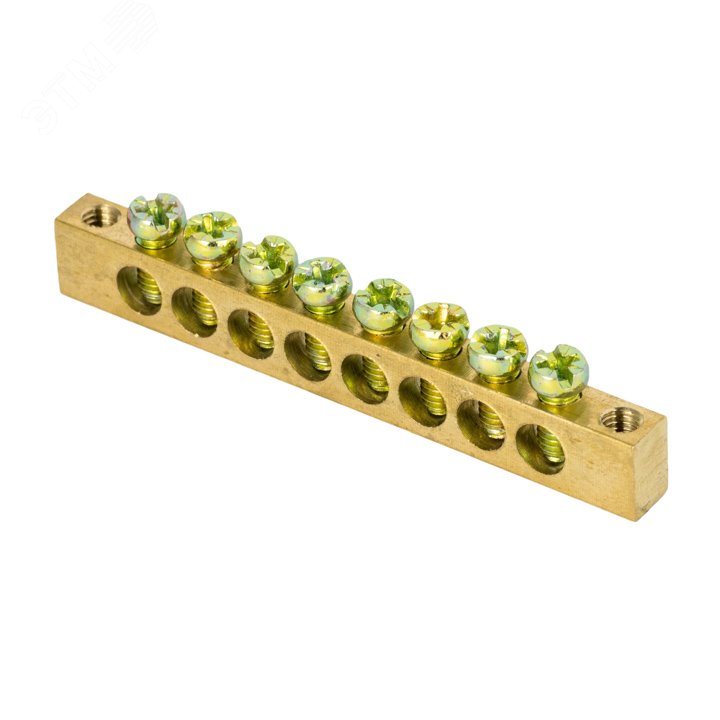 Шина нулевая 8х12мм 125А 8 отверстий крепеж по краям латунь PROxima