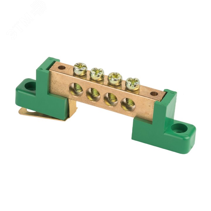 Шина 0 PE 6x9мм 4 отверстия латунь с контактной пластиной 2 зелёных угловых изолятора PROxima