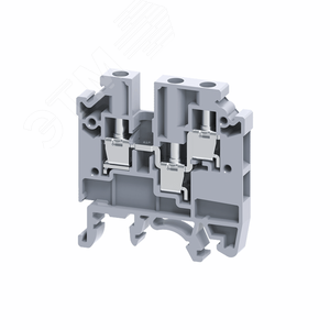 Многоконтактная одноуровневая клемма на номинальное сечение проводника 2.5 кв. мм. Клеммы трёх- и четырёхконтактные с выводами винтового типа предназначены для установки в распределительных шкафах и щитах систем автоматического управления (САУ) с монтажом на DIN-рейки. Они позволяют легко присоединить круглые медные проводники, номинальным сечением от 0,2 до 4 кв.мм, обеспечивая надежный контакт и простоту сборки электрических схем. Особенностью данного типа клемм является возможность подключения трёх или четырех проводников в одной клемме, обеспечивая большую плотность подключений и компактность решения. Все клеммные зажимы в одной клемме имеют электрическую связь. Клеммы с выводами винтового типа применяются в электрических цепях на номинальное напряжение до 1000 В переменного тока.