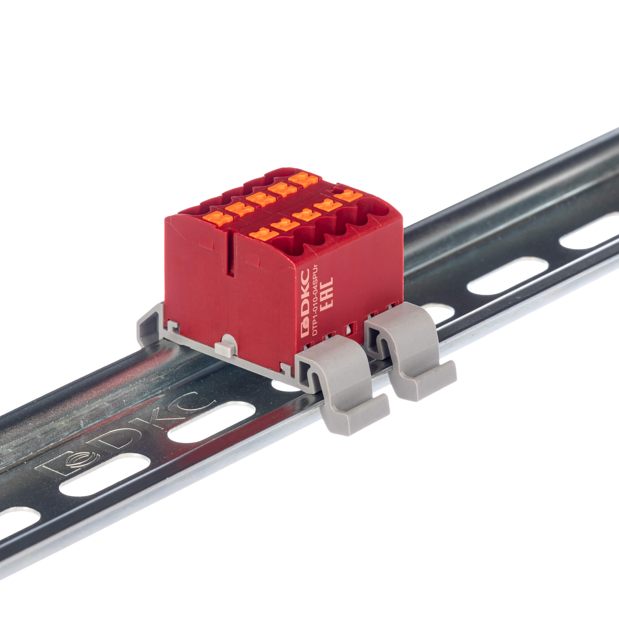 Блок распределительный, зажим push-in, 10 точек подключения 2,5 кв.мм, красный
