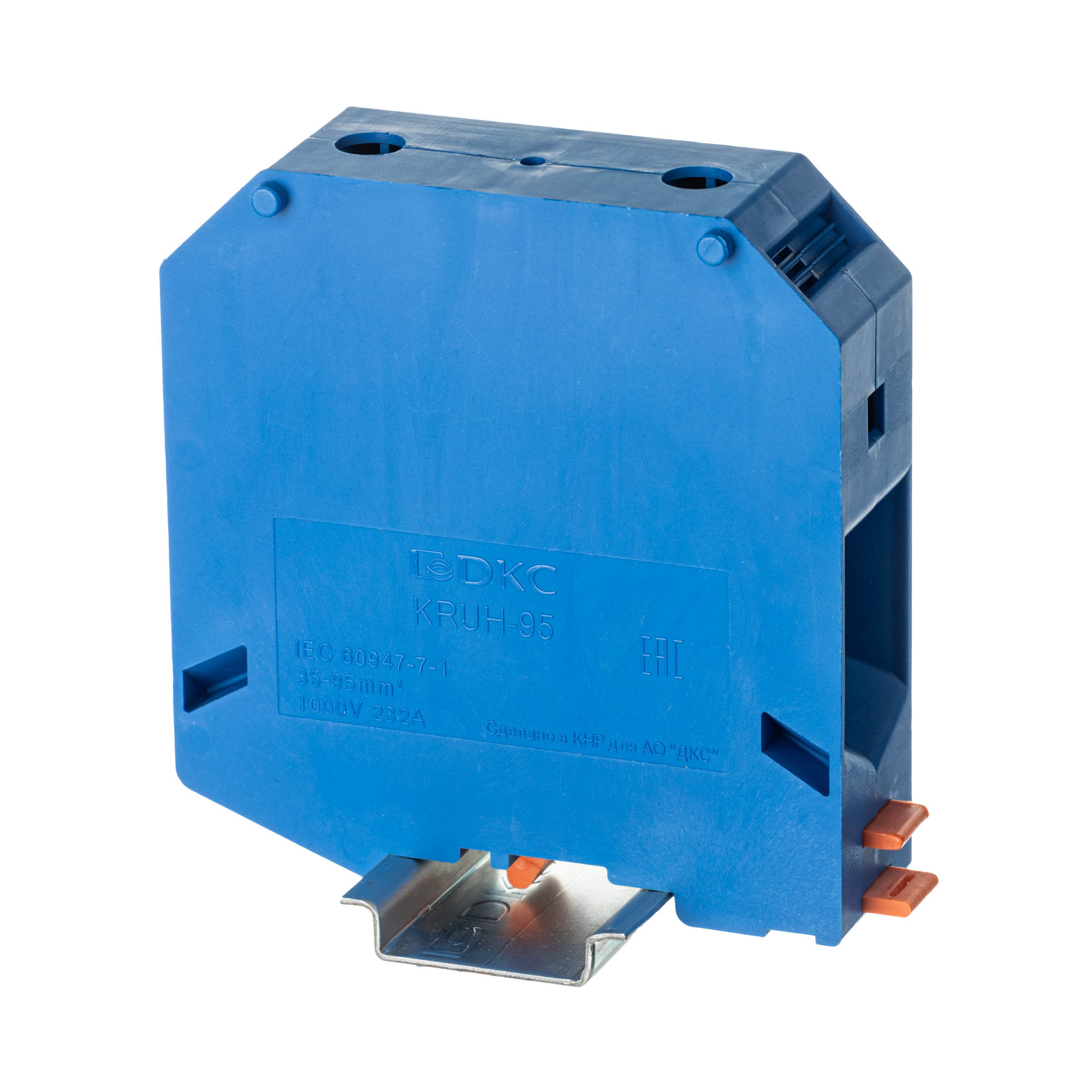 Клемма проходная, винтовой зажим, 2 точки подключения, 95 кв.мм, синяя