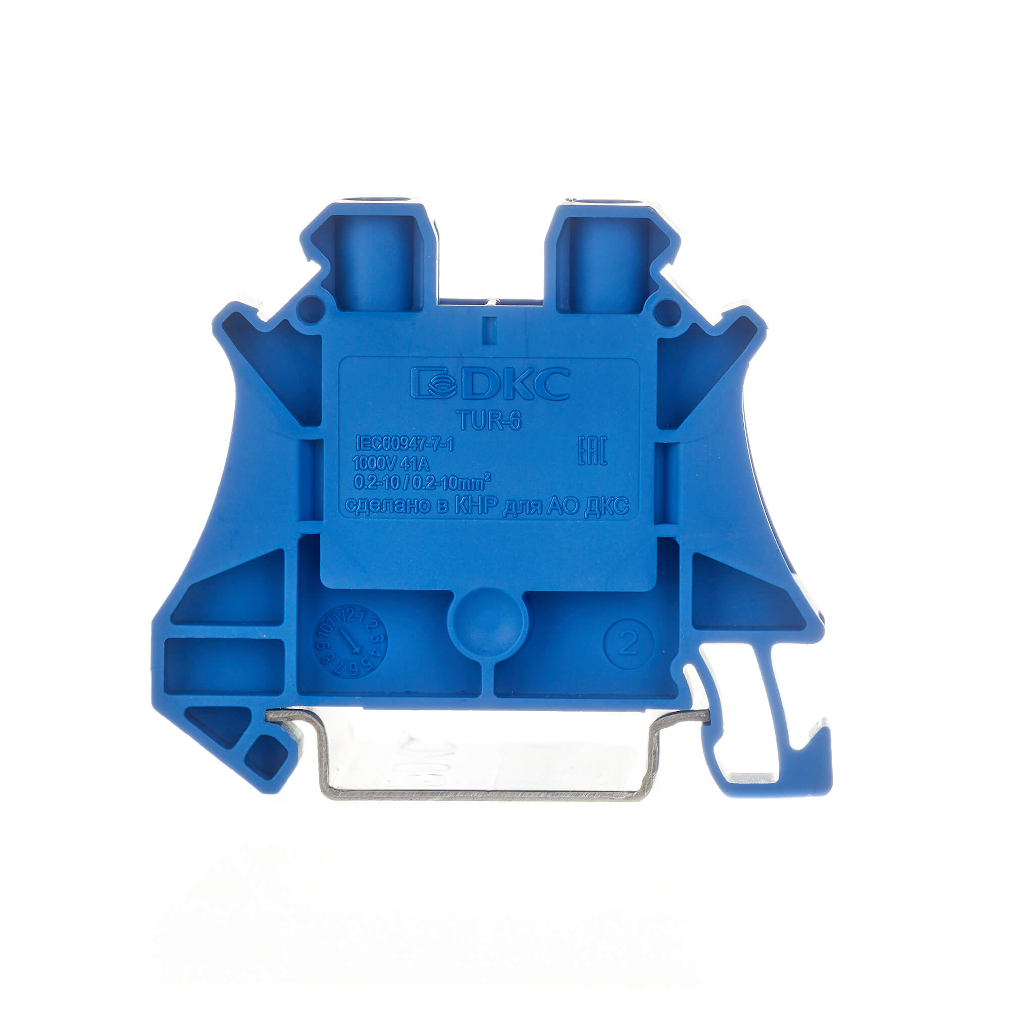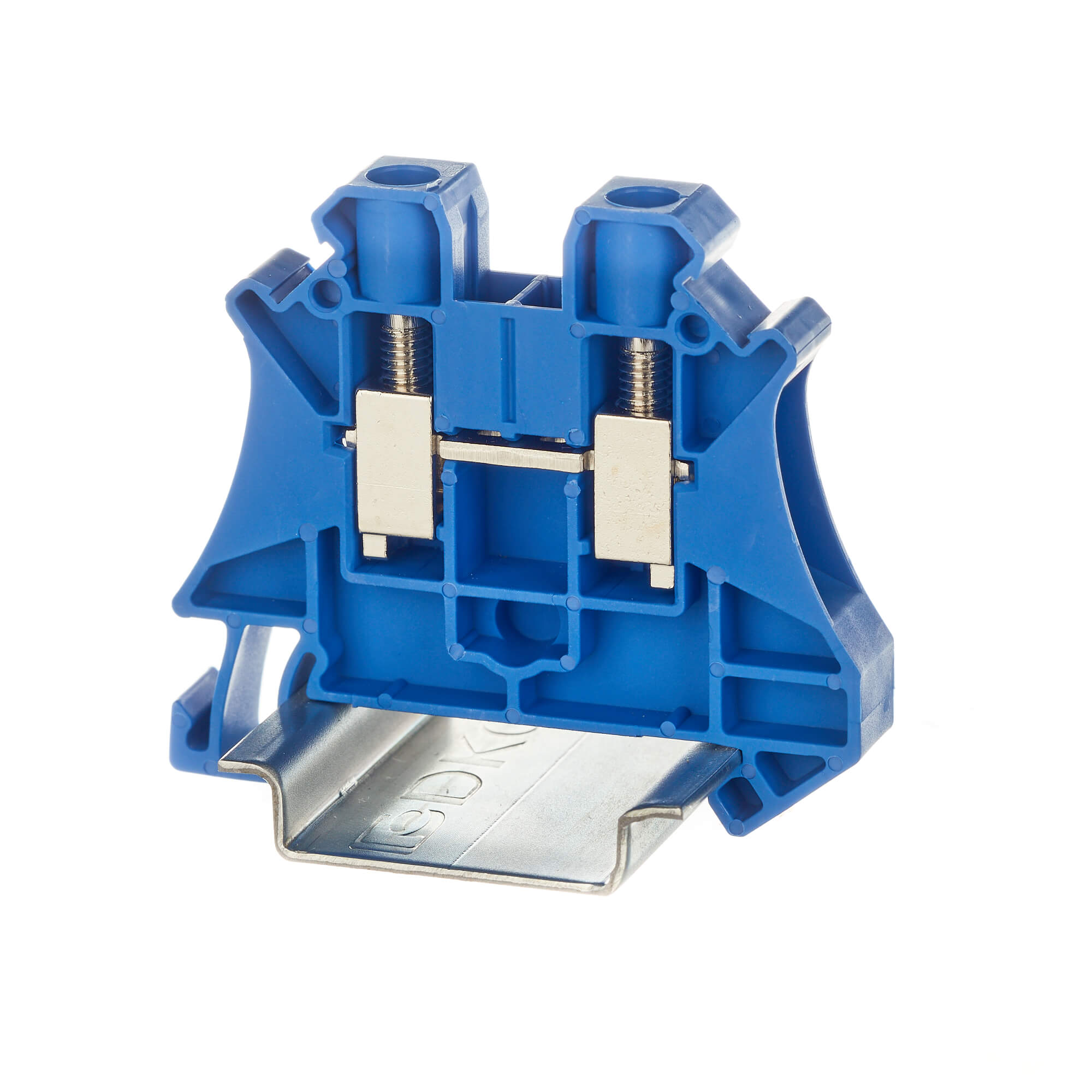 Клемма проходная, винтовой зажим, 2 точки подключения, 6 кв.мм, синяя