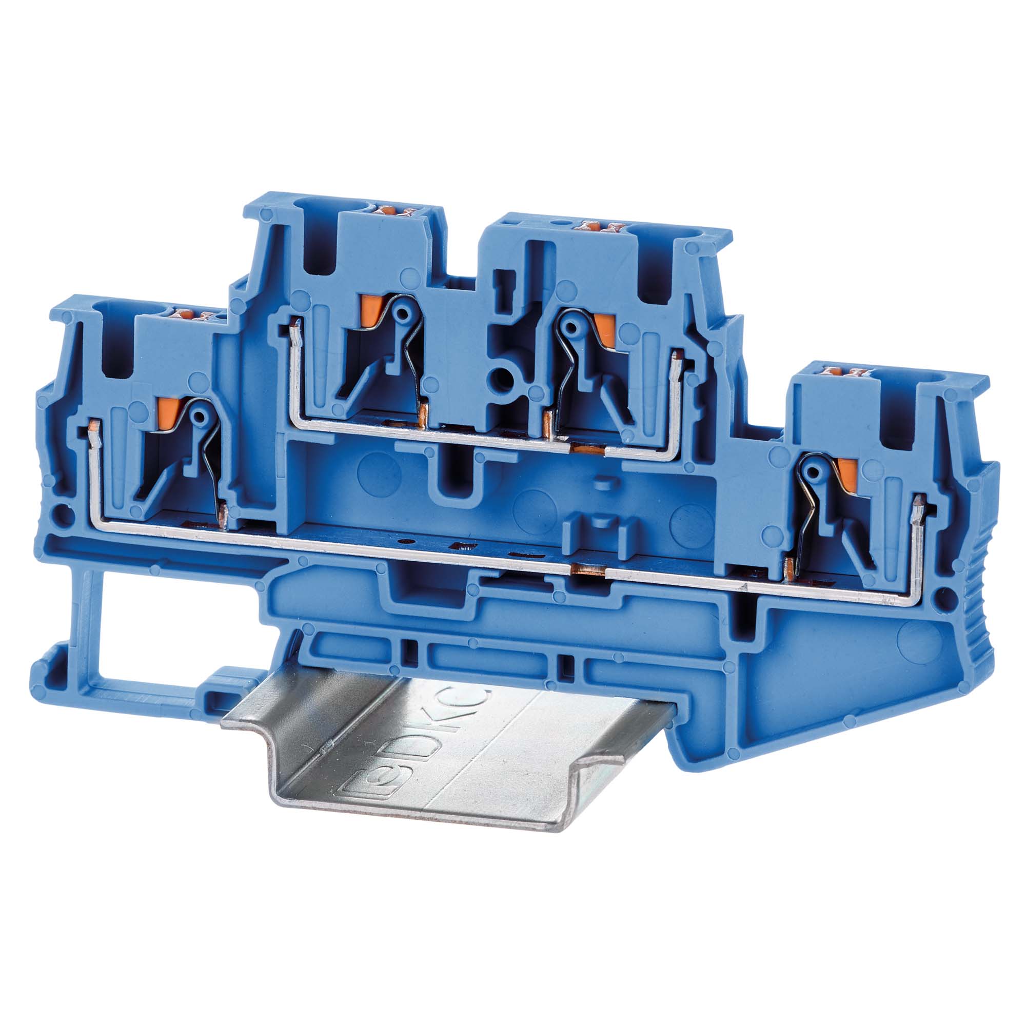 Клемма двухуровневая, зажим push-in, 4 точки подключения, 4 кв.мм, синяя