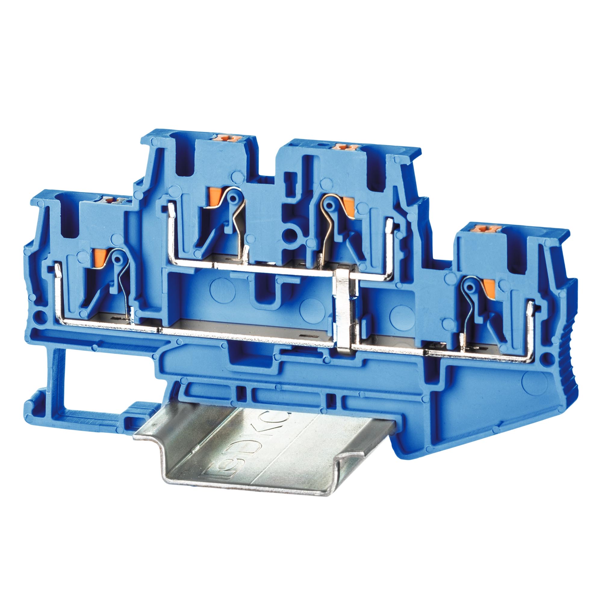 Клемма двухуровневая, зажим push-in, 4 точки подключения, с перемычкой между уровнями, 4 кв.мм, синяя