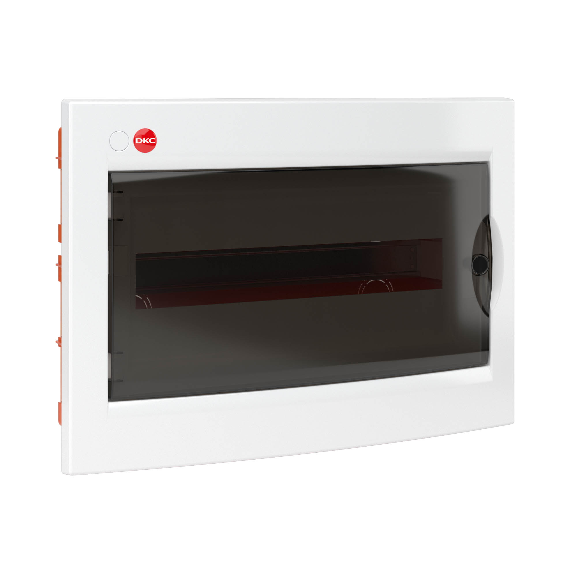 Встраиваемый распределительный щиток ДКС предназначен для монтажа в жилых и административных помещениях для установки автоматических выключателей любых производителей: таймеров, устройств защитного отключения и управления освещением и т.д. Щиток имеет оцинкованную DIN-рейку и суппорт, заглушки для пустых модулей, сборочные винты и заглушки для них, самоклеящуюся этикетку для маркировки цепей. Преперфорированные отверстия и насечки на задней стенке обеспечивают точное соединение с пластиковыми трубами и обеспечивают легкий монтаж. Клеммный блок 87518 в комплекте с крепежом, для коммутации питающих линий, жил проводов и кабелей. Дверца выполнена из затемненного полупрозрачного пластика. Специальная конструкция петель дает возможность открывать дверцу более чем на 180°. Замок для дверцы 87188, в комплекте с ключами. Степень пыле- и влагозащиты IP 41. Количество модулей - 18. Параметры щитка: ширина - 411 мм, высота - 300 мм, глубина встраиваемой части - 77 мм. Материал - термостойкий и ударопрочный пластик. Цвет - белый.