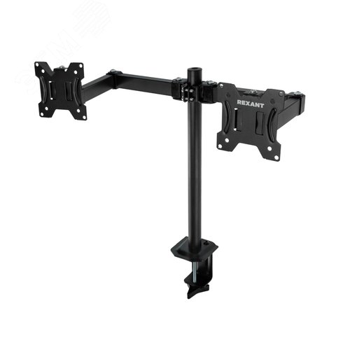 Кронштейн предназначен для крепления двух мониторов 13'-32' дюймов к столу. Совместим с большинством мониторов популярных брендов - Acer, AOC, Asus, BenQ, Dell, Hitachi, HP, Huawei, Hyundai, JVC, Lenovo, LG, Motorola, MSI, NEC, Nokia, Panasonic, Philips, Razer, Samsung, Sharp, Skyworth, Sony, TCL, Telefunken, Terra, Thomson, Toshiba, ViewSonic, Xiaomi. Фиксация кронштейна на столе осуществляется посредством струбцины. Предусмотрена система открытой укладки кабеля вдоль корпуса кронштейна. В комплекте поставляются все необходимые крепления для установки изделия, что обеспечивает удобный и быстрый монтаж. Поддержка крепления стандарта VESA - 75х75/100х100.