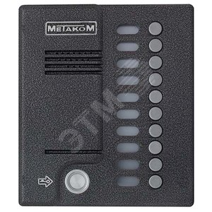 Блок вызова МЕТАКОМ МК10.2-TM4E представляет собой специализированную микропроцессорную систему, предназначенную для установки в многоквартирных домах, офисах для организации селекторной связи с координатной системой адресации с числом абонентов до 10. В качестве абонентских ключей используются электронные ключи METAKOM TM2002, МЕТАКОМ TM2003(A,B) или Dallas iButtontm - DS1990A. В качестве оконечных устройств, устанавливаемых у абонентов, рекомендуются трубки квартирные переговорные (ТКП) типа ТКП-01, ТКП-05М, ТКП-06М, ТКП-10М, ТКП-12М, ТКП-14М или другие, предназначенные для домофонов с координатной системой адресации. Домофон обеспечивает подачу сигнала вызова на ТКП абонента, дуплексную связь посетителя с абонентом, дистанционное открывание замка по сигналу от ТКП. Замок также может быть открыт с помощью TM - ключа, с помощью кода или нажатием кнопки ВЫХОД.