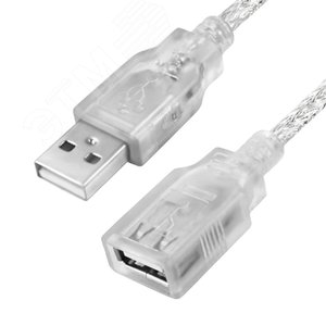 Удлинитель USB 2.0 AM на AF, 3 м., прозрачный, ферритовые кольца