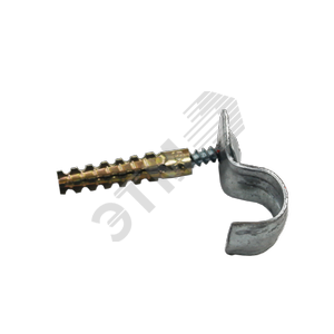Дюбель-хомут. Представляет собой дюбель металлический универсальный, саморез с широкой шляпкой клоп острый DIN 968 и хомут (скоба однолапковая выбирается под размер). Применяется для кабельных линий с временем сохранения работоспособности 90 минут. Обеспечивает крепление одиночных кабелей или металлорукава диаметром от 6 до 32мм. При креплении одиночных проводов следует избегать нарушения изоляции.