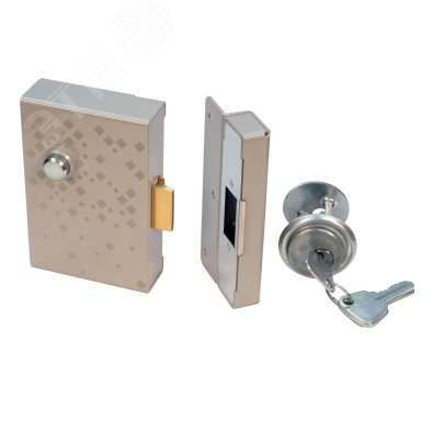 Замок электромеханический накладной для запирания распашных дверей и калиток