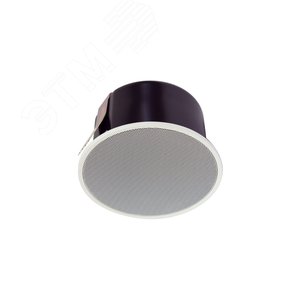 Громкоговоритель должен быть потолочного типа и состоять из двух частей, включающих внутреннюю сетчатую решетку и шасси со встроенным громкоговорителем без видимых креплений и незаметным внешним ободком толщиной всего 5 мм. Вторая часть должна представлять собой стальной противопожарный купол для предотвращения распространения дыма или огня через потолочные пустоты в аварийной ситуации. Установка осуществляется с помощью отдельного пружинного защелкивающегося механизма, позволяющего монтировать его в потолок толщиной от 5 до 25 мм (0,2' - 0,98'). Должен быть предоставлен шаблон для помощи в вырезании монтажных отверстий. Громкоговоритель включает один полнодиапазонный конусный излучатель диаметром 12 см (5') с ровной частотной характеристикой от 170 Гц до 20 кГц с широкоугольной дисперсией.