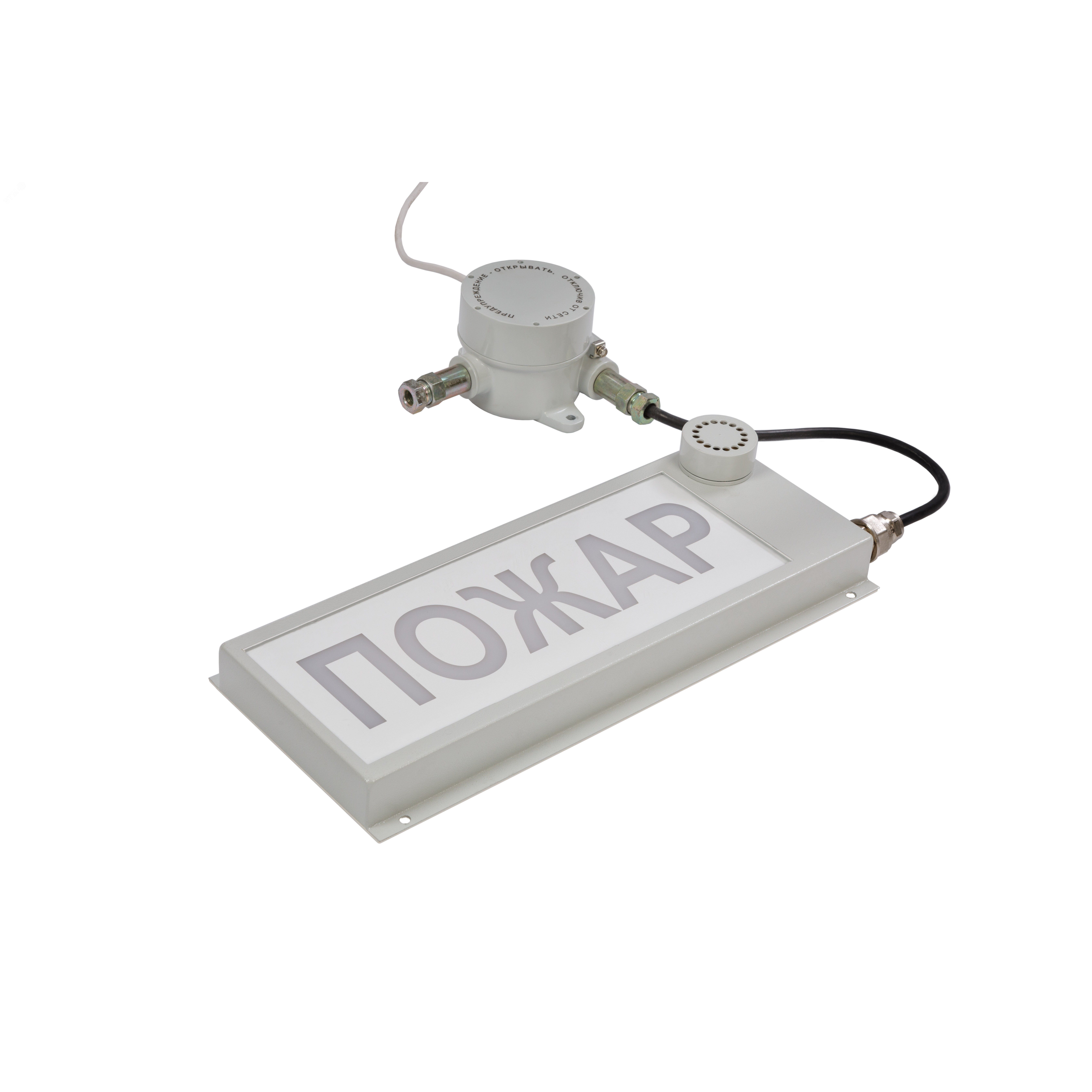 Оповещатель пожарный светозвуковой комбинированный взрывозащищенный ФИЛИН-Т-Мd-12-БСЗ+З-М20-К/Ч-ПОЖАР в комплекте с козырьком 908.3139