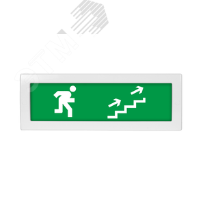 Оповещатель световой, двухстороннее исполнение с петлями для потолочного крепления Молния-2-24 Человек по лестнице вверх зеленый фон