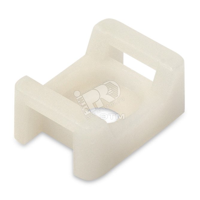 Площадки, закрепляемые под винт, аналогичны по своему назначению самоклеящимся площадкам для крепления кабельных стяжек. Отличие состоит в том, что они фиксируются к поверхности при помощи винта или самореза, а также позволяют крепить стяжки более широких размеров и, соответственно, формировать большие по размерам пучки кабелей. Данные изделия можно также применять в тех случаях, когда неровная поверхность или несоответствующее покрытие (побелка, бетон и т.д.) не позволяют использовать самоклеящиеся площадки. В основании площадки имеется отверстие под винт. Дизайн изделия выполнен в форме седла, обеспечивающей стабильное положение жгута кабелей.