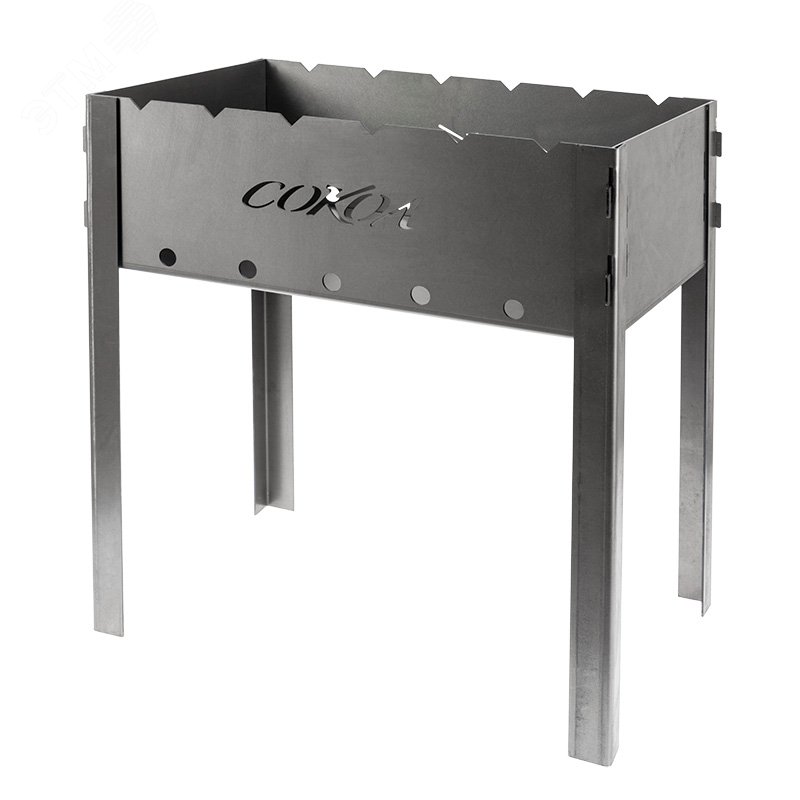 Компактный разборный мангал СОКОЛ изготовлен из стали увеличенной толщины (1,5 мм), поэтому не подвергается тепловым деформациям от углей и дров. Сборка и установка мангала производится вручную без использования специальных инструментов. На стенках жаровни размещены специальные прорези, которые позволяют разместить до 6 шампуров. На боковых стенках предусмотрены отверстия для интенсивного горения. Общая высота ножек 50,5 см оптимальна и удобна для приготовления шашлыков. Жаровня размером 445х295 мм и глубиной 155 мм позволяет разместить шампуры и получить порцию блюда, рассчитанную на небольшую компанию. В разобранном виде мангал не занимает много места и легко помещается в багажник автомобиля.