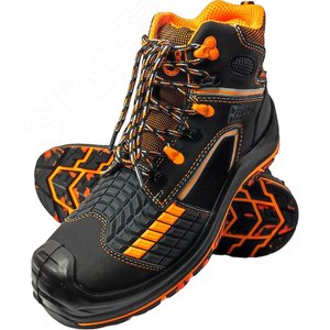 Подошва ботинок - двухслойная, полиуретан/резина (на основе натурального каучука),обладающая повышенным сопротивлением к скольжению, устойчивая к воздействию нефти, нефтепродуктов, щелочей концентрации до 20%, повышенных температур. Стелька - антипрокольная, кевларовая 1200Н. Подносок укрепленный, поликарбонатный 200 Дж. Материал верха - термоустойчивая водоотталкивающая кожа (юфть) толщиной 1,8-2,0 мм, обладает амортизирующими свойствами, гасит ударные нагрузки, а также придает обуви легкость, комфортность и повышенные теплозащитные свойства. Ходовой слой изготовлен из износостойкой, термостойкой, морозостойкой резины на основе нитрильного каучука с улучшенным сопротивлением скольжению, стойкостью к деформациям, истиранию. Для защиты от ударов в носочной части стопы в обуви применяется композитный подносок (Мун 200), имеющий конфигурацию, препятствующую надавливанию верхнего края на стопу, и оборудованный прокладкой из полиуретана.