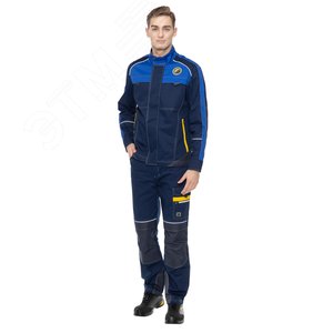 Костюм состоит из куртки и брюк. Куртка с застежкой на молнию под планкой на липучках. Нагрудные карманы под кокеткой. Нижние карманы на молнии с отделкой из стропы. Объем куртки регулируется по низу потайной кулисой. Рукава с манжетами на кнопке. Вентиляционные отверстия под проймой. Брюки с застежкой на молнию и металлическую пуговицу. Пояс с широкими шлевками и с полукольцом. На передних половинках верхние боковые карманы и карманы на коленях для амортизационных вкладышей. На задних половинках верхние накладные карманы и карманы для инструментов. На левой брючине в области середины бедра накладной карман. Съемный пояс из ременной стропы на пластиковой пряжке. Световозвращающие канты на рукавах и кокетках куртки, над коленями и на кокетке брюк. По низу боковых частей, в области локтей куртки, в области коленей, задних карманов и низа брюк усилительные накладки из прочного материала.