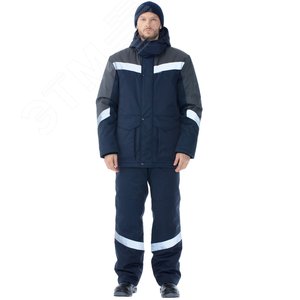 2 класс защиты III климатический пояс - куртка и полукомбинезон, световозвращающие полосы для работы в условиях пониженной видимости, наклонные нагрудные карманы и нижние накладные карманы с клапанами, съемный капюшон с регулировкой объема по лицевой и затылочной части, застежка на молнию с ветрозащитной планкой, внутренние трикотажные манжеты-напульсники, кулиса по низу куртки для регулирования объема, полукомбинезон с застежкой на молнию на регулируемых по длине бретелях, нагрудный карман-портфель и нижние накладные карманы с наклонным входом, по спинке на уровне талии кулиса с эластичной тесьмой, усилительные накладки в области коленей, в нижней части брюк разрезы на молнии под планкой для регулирования ширины.