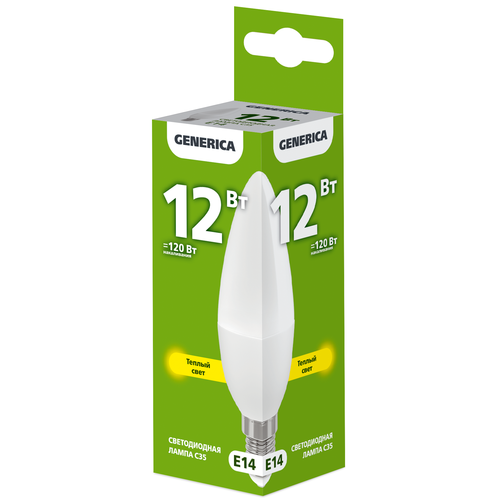 Лампа светодиодная C35 свеча 12Вт 230В 3000К E14 GENERICA