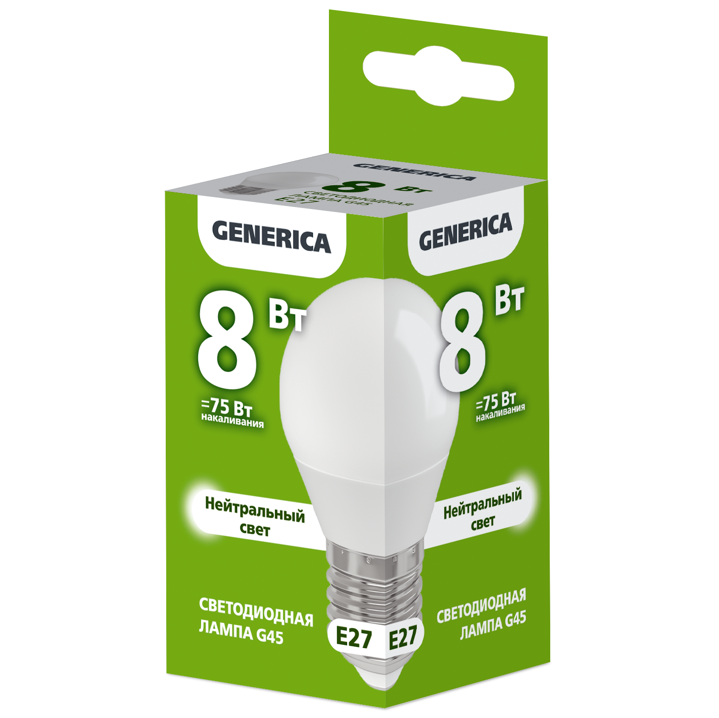 Лампа светодиодная G45 шар 8Вт 230В 4000К E27 GENERICA