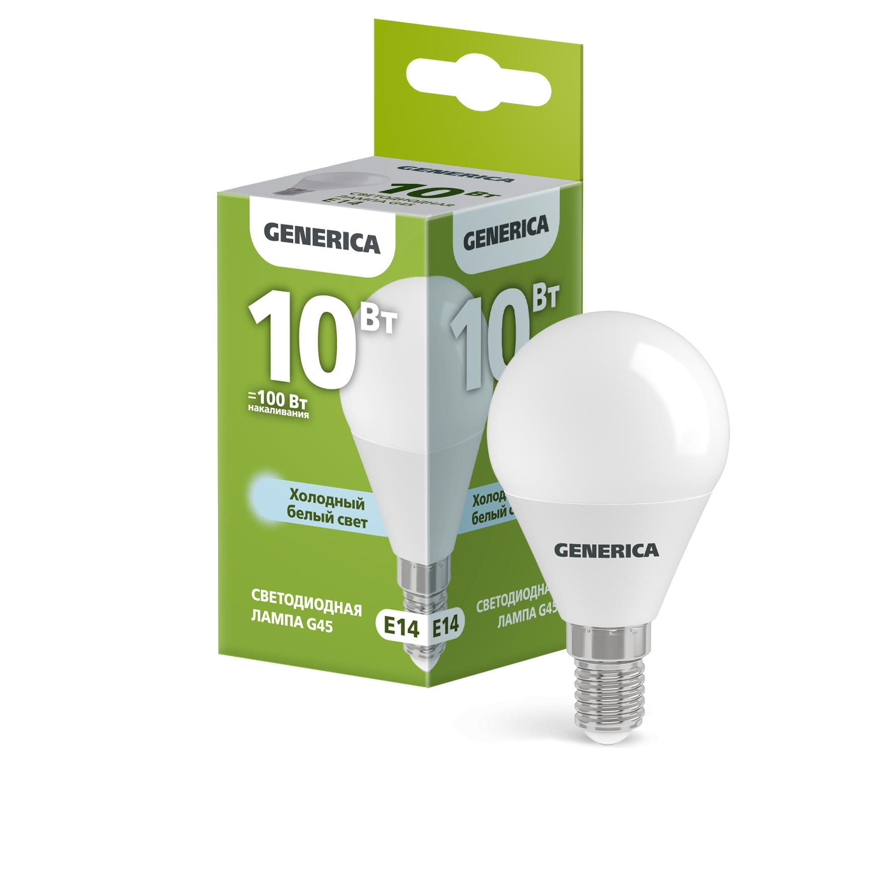 Лампа светодиодная G45 шар 10Вт 230В 6500К E14 GENERICA