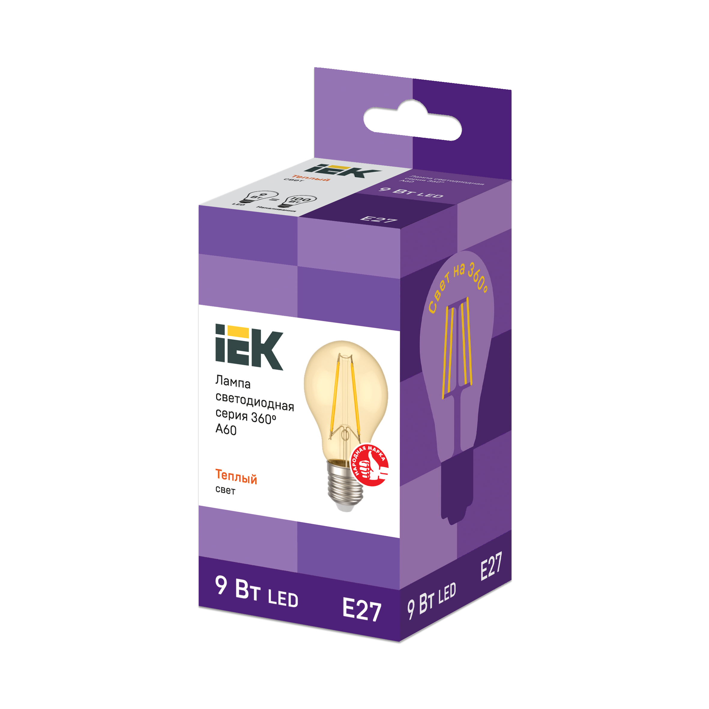 Лампа светодиодная A60 груша золото 9Вт 230В 2700К E27 серия 360° IEK