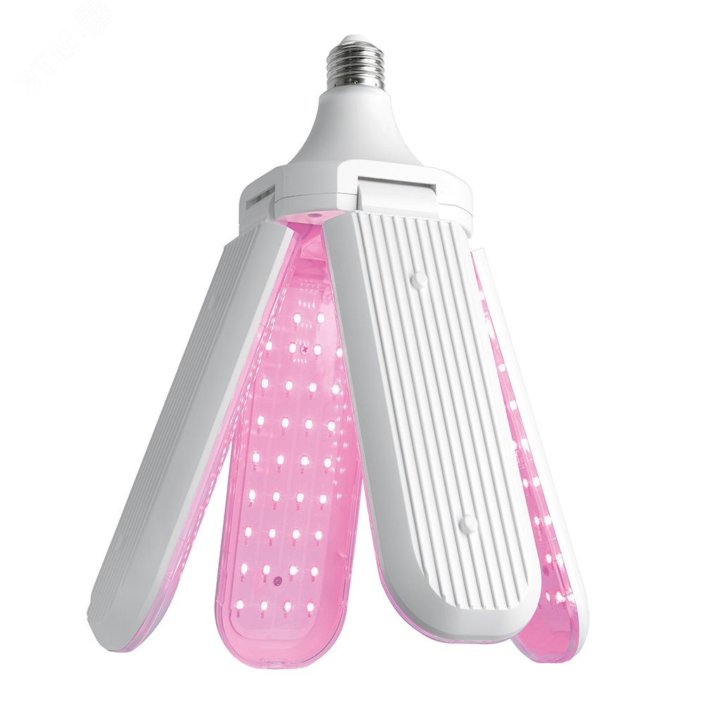 Лампа светодиодная LED 40вт Е27 для растений и рассады 4 лепестка трансформер