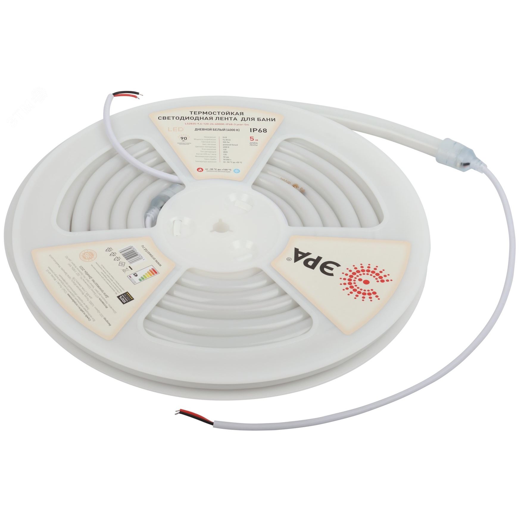 Термостойкая светодиодная лента LS2835-9,6-120-24-4000K-IP68-3 year-5m со степенью защиты от пыли и влаги IP68 - современный способ создания подсветки и освещения в банях и саунах. LED лента предназначена для эксплуатации при температурах от -30 С до + 100 С. Легко и быстро устанавливается на любой поверхности с помощью крепежей, которые есть в комплекте со светодиодной лентой. LED лента не требует пайки. Для подключения можно использовать коннектор Б0062253 - LS-connector-15mm-D-IP68-bath. Рабочее напряжение ленты составляет 24 В, а мощность равна 9,6 Вт/м. Светодиодная лента обладает световым потоком 900 лм/м с дневным белым цветом свечения (4000 К). Угол рассеивания 360. ВНИМАНИЕ: - термостойкую светодиодную ленту с напряжением 24В допустимо подключать последовательно отрезками не более 5 м. - во избежание выхода из строя не допускается длительная работа ленты в смотанном виде.