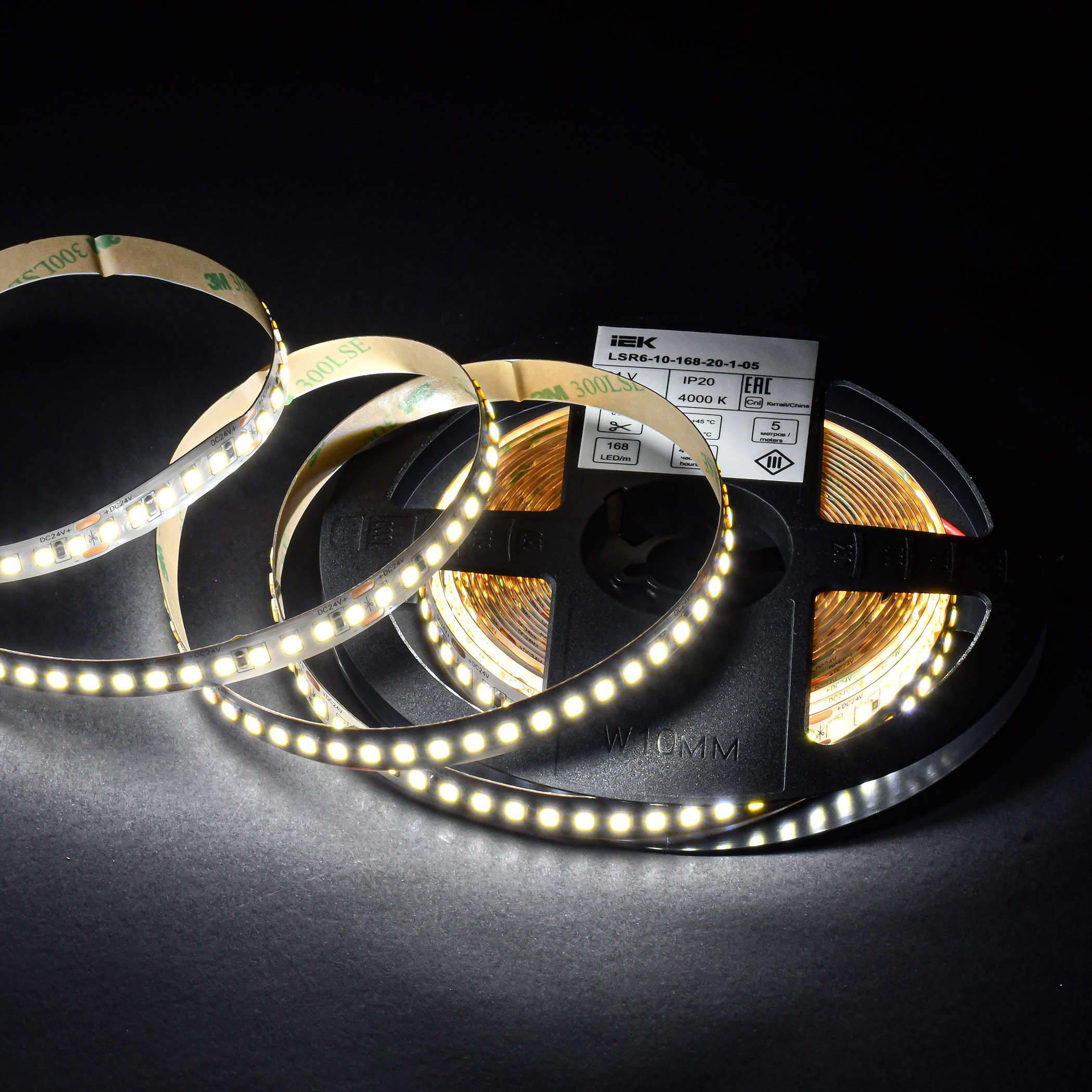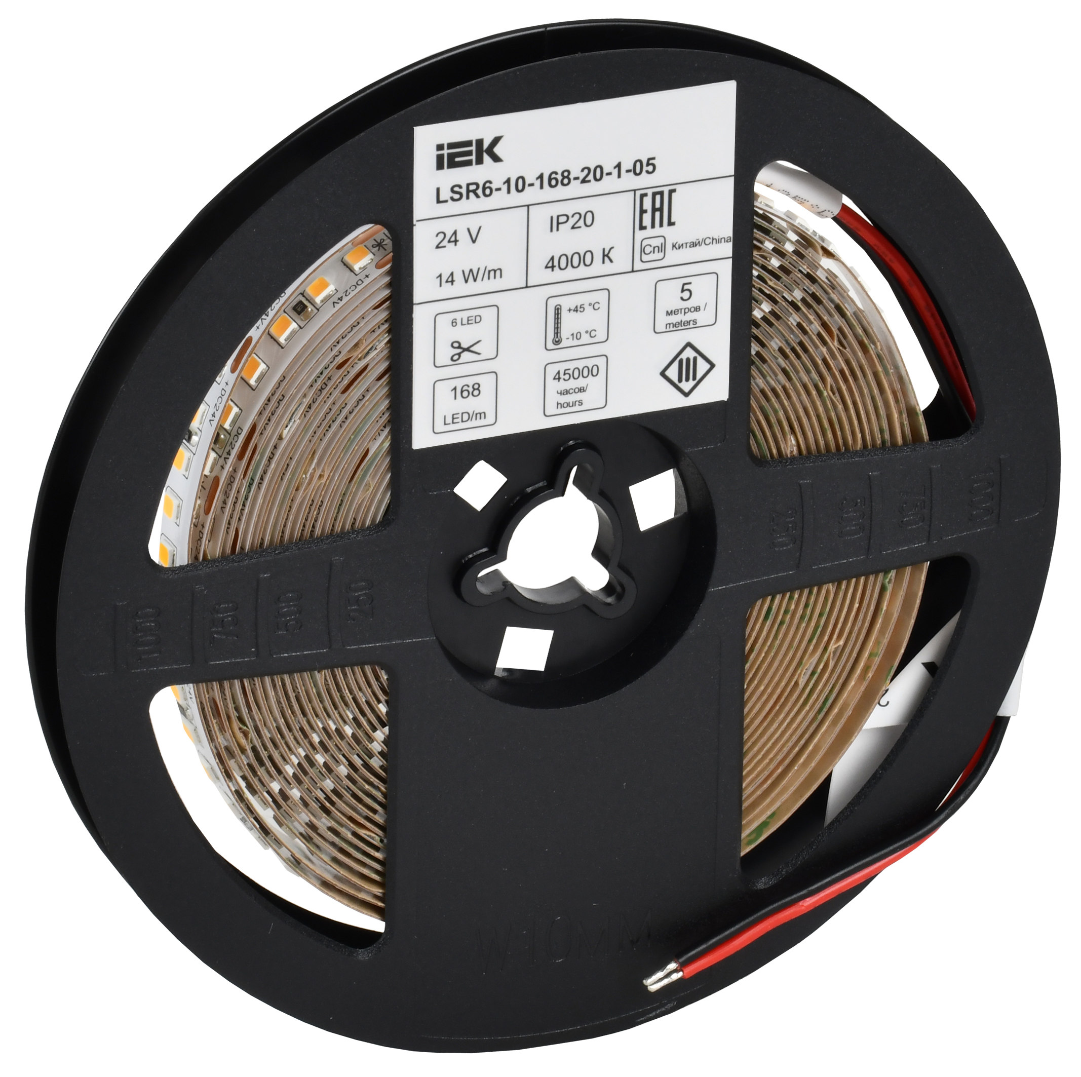 Лента светодиодная 5м SMD2835 168LED/м 14Вт/м IP20 ширина 10мм 24В нейтральный белый IEK