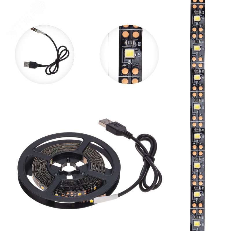 Лента LED с USB-коннектором 5 В IP23 SMD 2835 60 LED/м 3 м теплый белый (2700 K) LAMPER