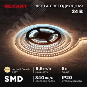 Лента светодиодная 24В SMD2835 9,6Вт/м 120LED/м 3000K 10мм 5м IP20