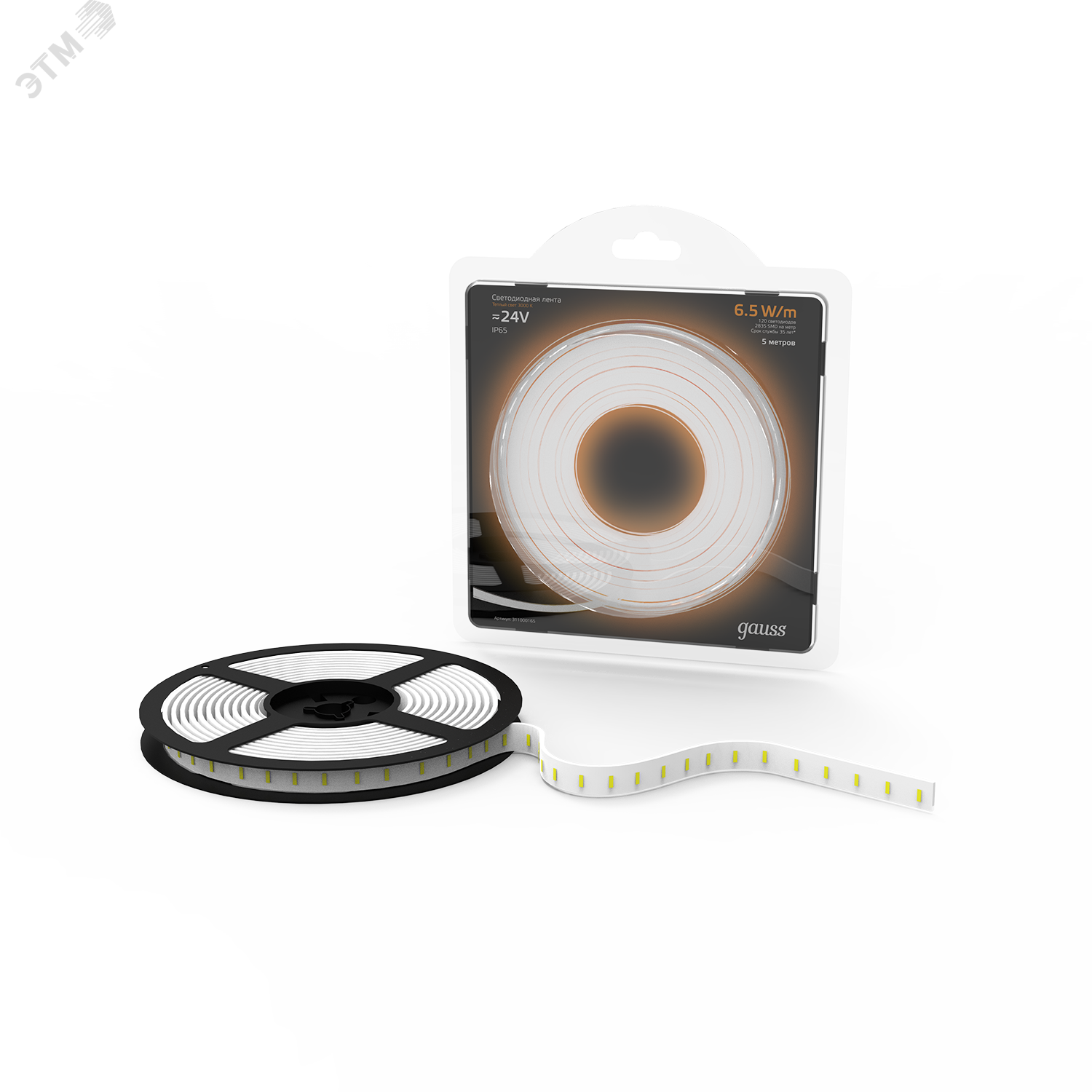 Лента светодиодная LED 2835/120-SMD 6,5 Вт/м 600 Лм/м 3000К теплый белый IP65 24 В DC 8 мм (блистер 5 м) Black Gauss