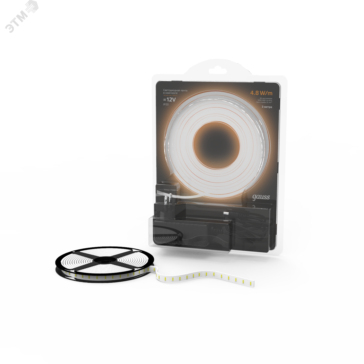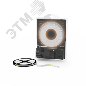Лента светодиодная LED (комплект лента и драйвер) 2835/60-SMD 4,8 Вт/м 210 Лм/м 3000К теплый белый IP20 12 В DC 8 мм (блистер 3 м) Black