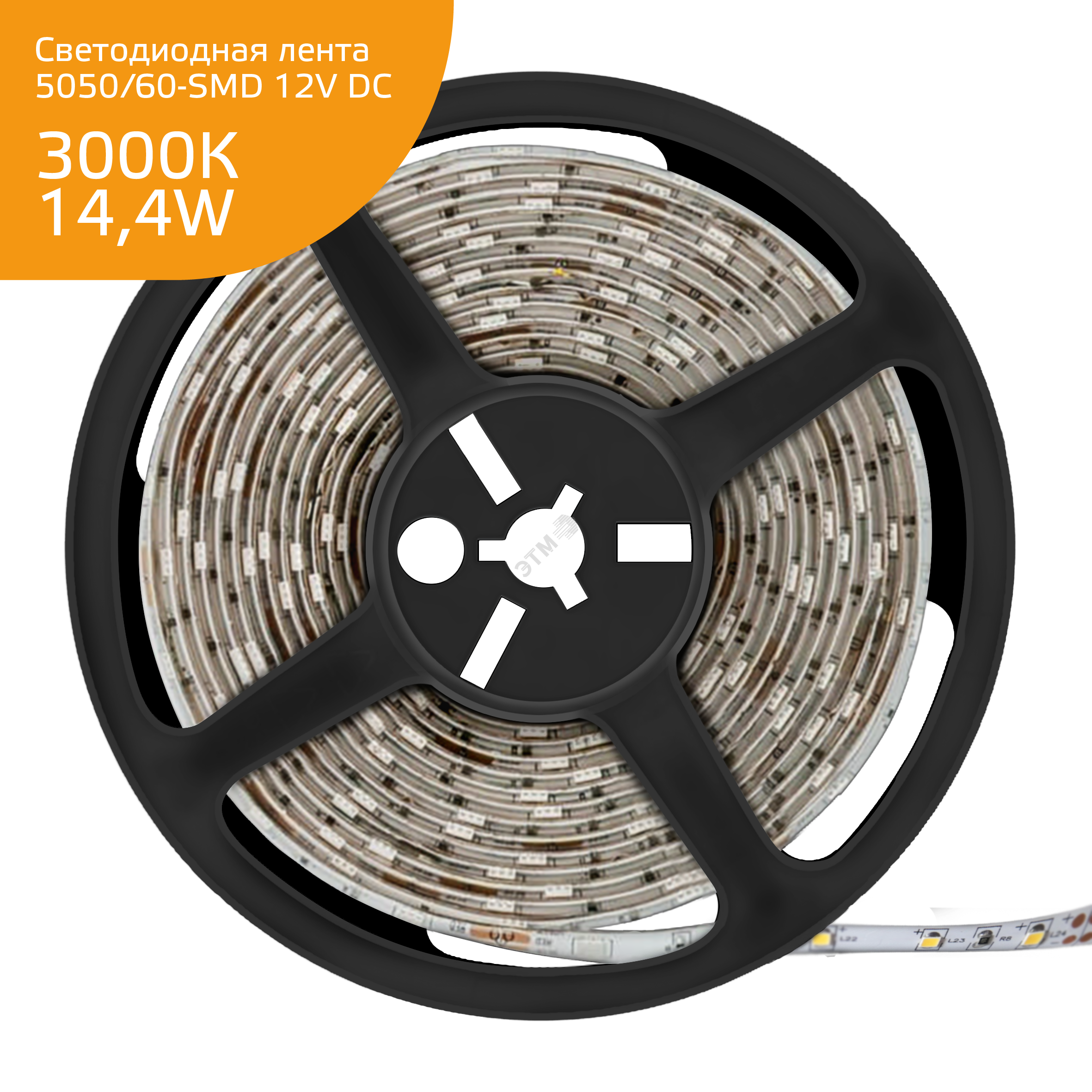 Лента светодиодная LED 5050/60-SMD 14,4 Вт/м 510 Лм/м 3000К теплый белый IP20 12 В DC 8 мм (катушка 5 м ZIP bag) Elementary