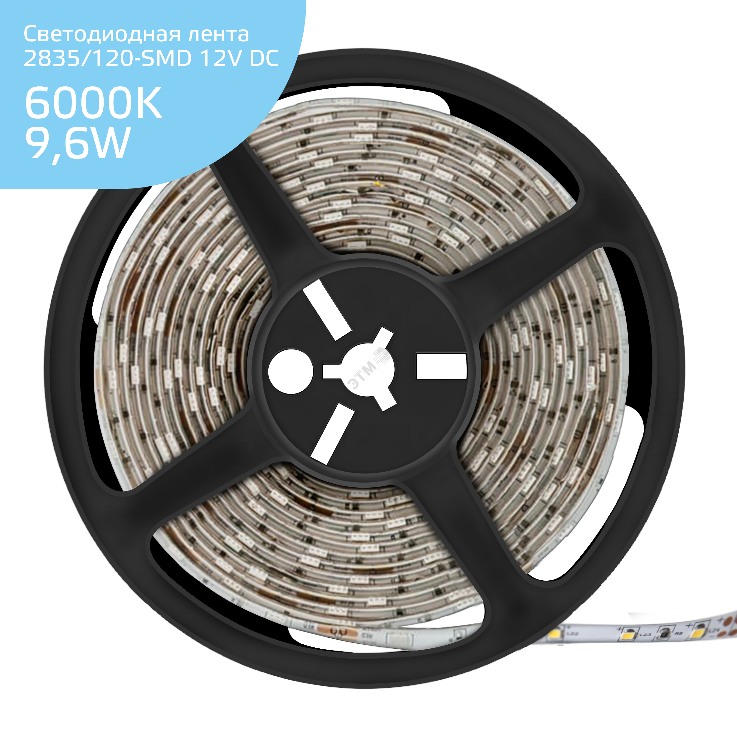 Лента светодиодная LED 2835/120-SMD 9,6 Вт/м 290 Лм/м 6000К холодный IP66 12 В DC 8 мм (катушка 5 м ZIP bag) Elementary