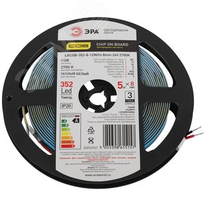 Лента светодиодная LRCOB-352-8 12W/m 8мм 24V 2700K 3year белая 5 м