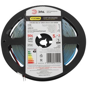 Лента светодиодная LRCOB-504-8 10W/m 8мм 24V 4000K 3year белая 5 м