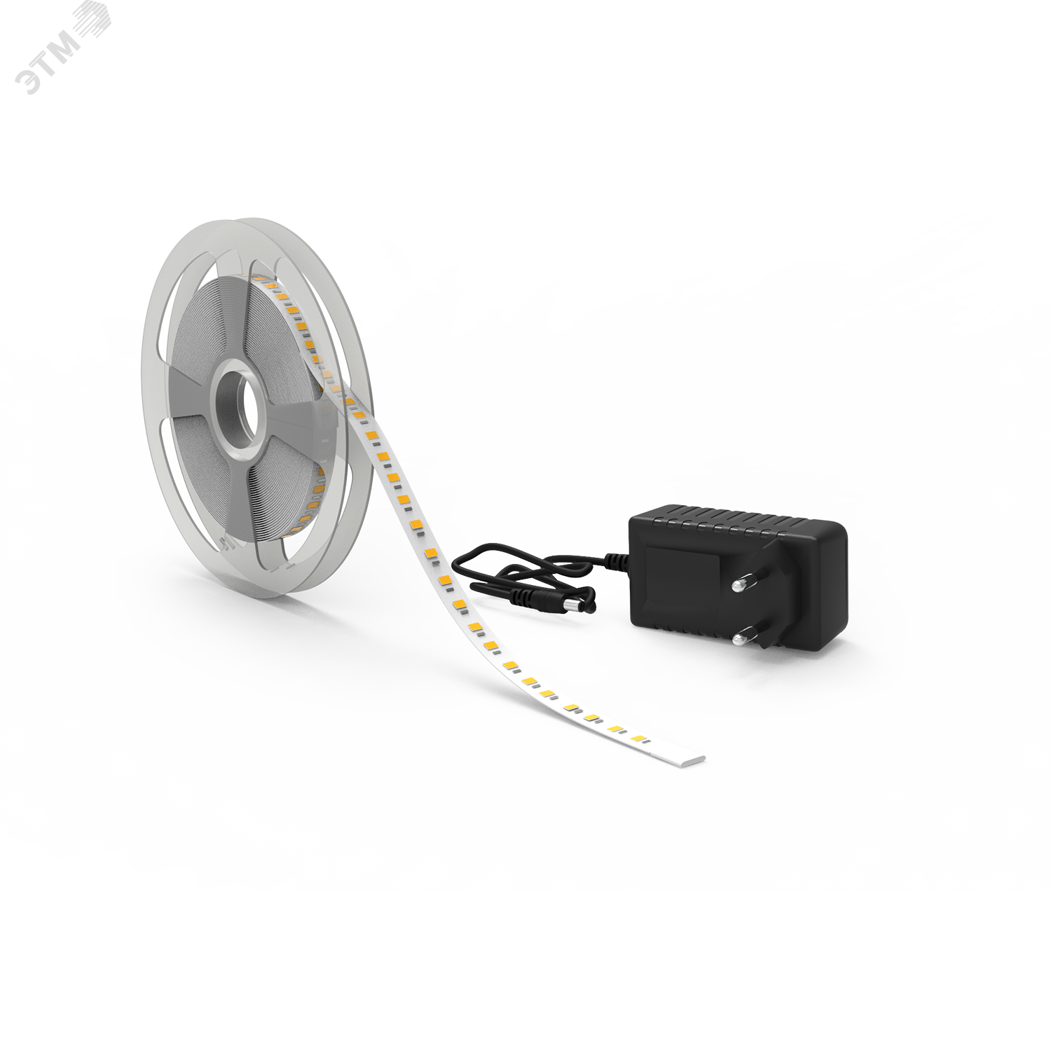 Лента светодиодная LED (комплект лента и драйвер) 2835/120-SMD 14,4 Вт/м 1400 Лм/м 3000К теплый белый IP20 12 В DC 8 мм (катушка 5 м) Basic