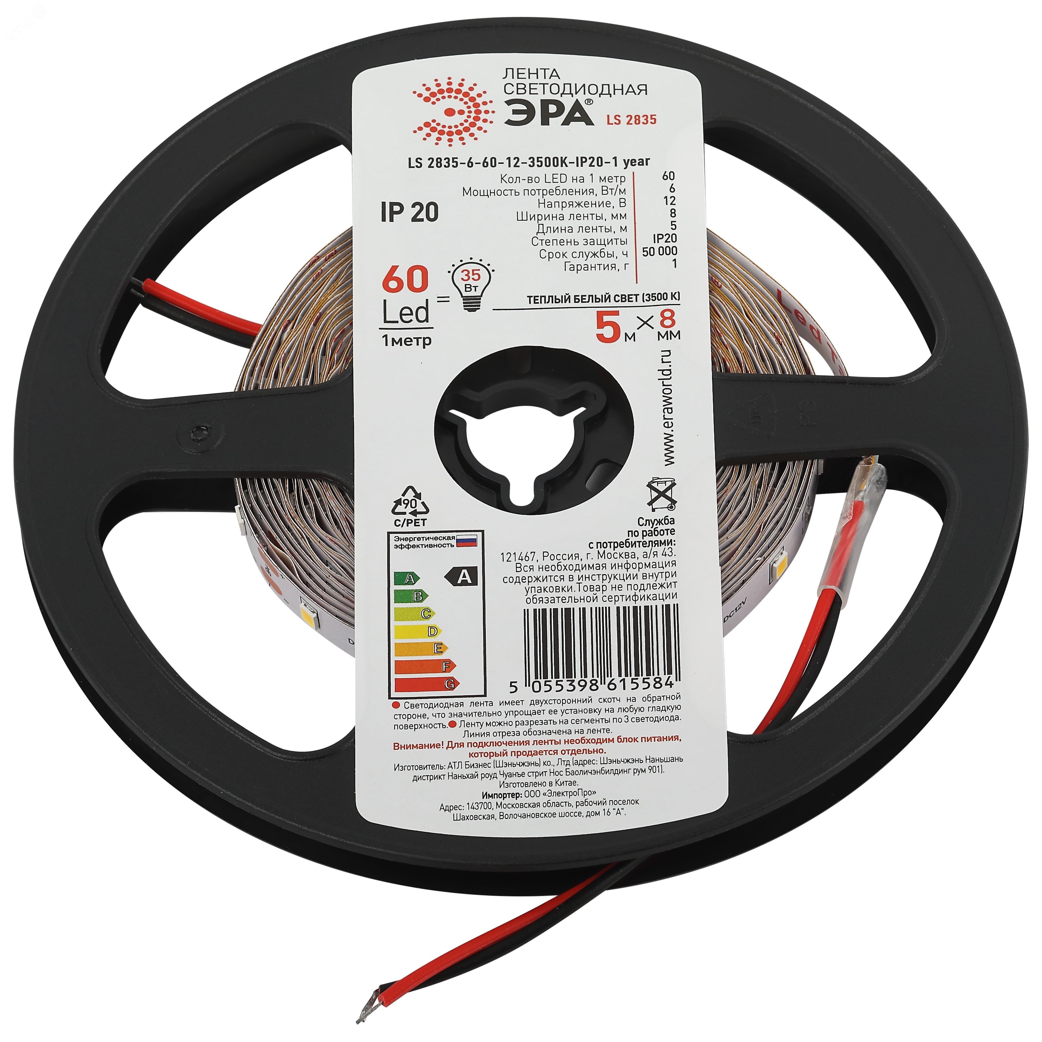 Светодиодная лента LS2835 6-60-12-3500K-IP20-1 year-5m нейтральный белый свет