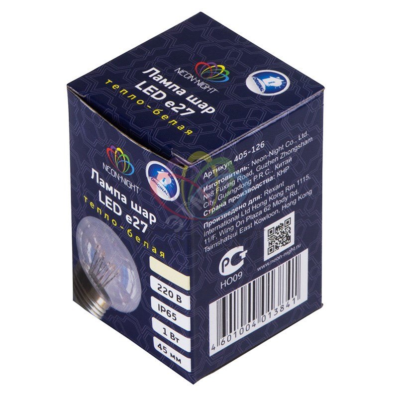 Лампа Шар e27 6 LED 45мм - тёплый белый, прозрачная колба, эффект лампы накаливания