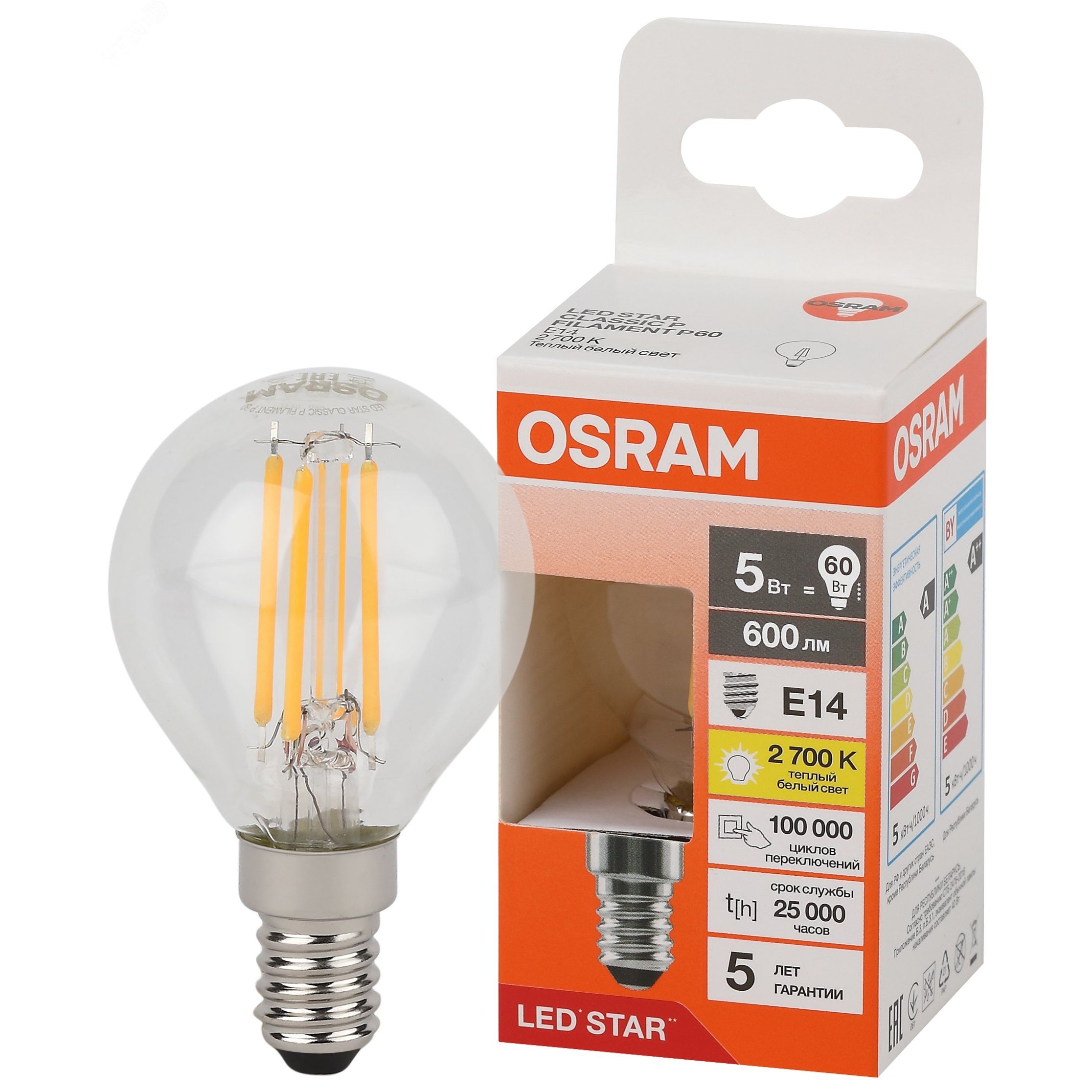 Лампа светодиодная филаментная LED Star Шарообразная 5Вт (замена 60Вт), 600Лм, 2700К, цоколь E14 OSRAM LEDVANCE 4058075684393