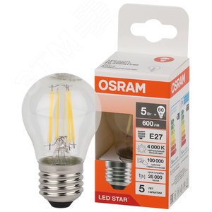 Светодиодные лампы OSRAM - разумная замена традиционным лампам - они снижают затраты на освещение до 90% при сохранении привычного уровня освещенности. Световой поток лампы равен 600 люмен, что соответствует лампе накаливания на 60 Вт. Это филаментная лампа прекрасно выглядит, а потому идеально подходит для открытых светильников и декоративного освещения. Качество света на высоте - низкие пульсации защищают глаза, а высокий индекс цветопередачи позволяет видеть мир в его истинном цвете. Кроме того, лампы OSRAM полностью безопасны для здоровья, поскольку в них нет опасных материалов по европейскому стандарту RoHS, а также они не производят вредных электромагнитных излучений, что подтверждено ЭМС (сертификат электромагнитной совместимости). Лампа проработает долго - срок службы - 25000 часов, 5 лет гарантии. Светодиодные лампы OSRAM - умный выбор для здоровья семьи и кошелька!