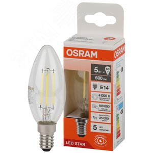 Лампа светодиодная филаментная LED Star Свеча 5Вт (замена 60Вт), 600Лм, 4000К, цоколь E14 OSRAM