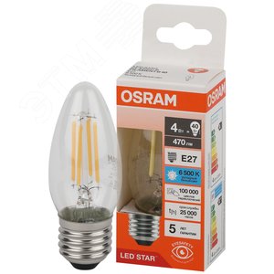Лампа светодиодная филаментная LED Star Свеча 4Вт (замена 40Вт), 470Лм, 6500К, цоколь E27 OSRAM LEDVANCE 4058075688049