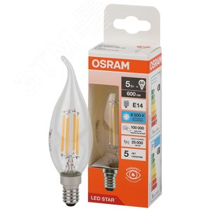 Лампа светодиодная филаментная LED Star Свеча на ветру 5Вт (замена 60Вт), 600Лм, 6500К, цоколь E14 OSRAM