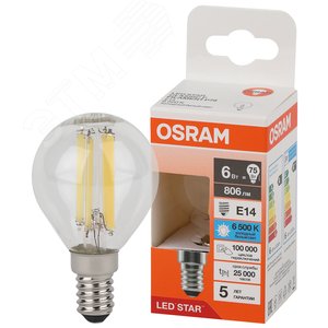 Лампа светодиодная филаментная LED Star Шарообразная 6Вт (замена 75Вт), 806Лм, 6500К, цоколь E14 OSRAM LEDVANCE 4058075688254