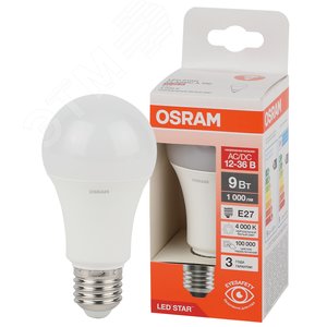 Лампа светодиодная LSCLA100 9W/840 12-36VFR E27